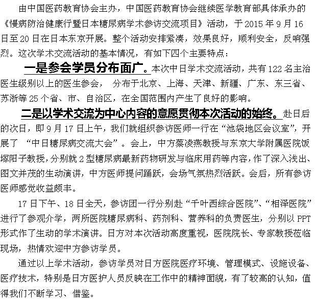 慢病防治健康行暨日本糖尿病学术参访交流项目